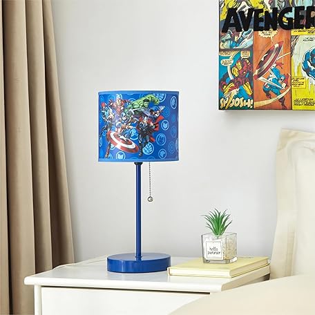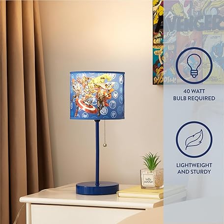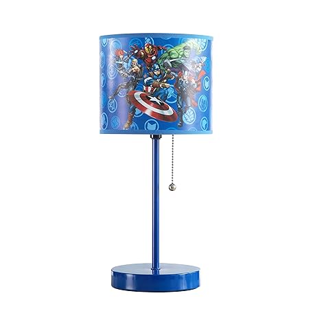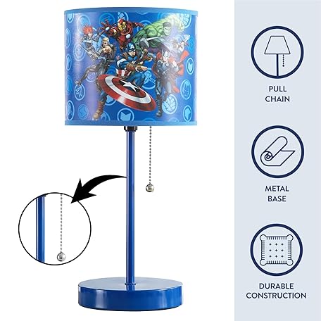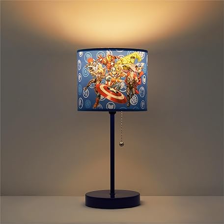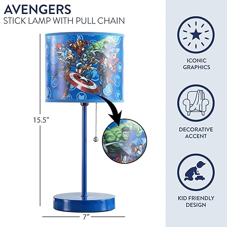 • Idea Nuova Table Lamp for Kids, Stick Lamp with Printed Shade & Pull Chain, Bedroom or Nursery Nightstand Lighting,Avengers