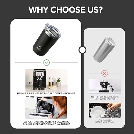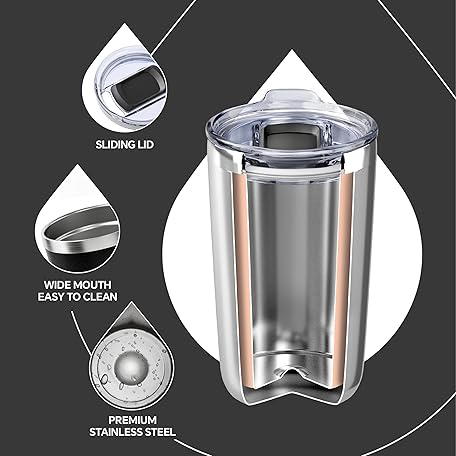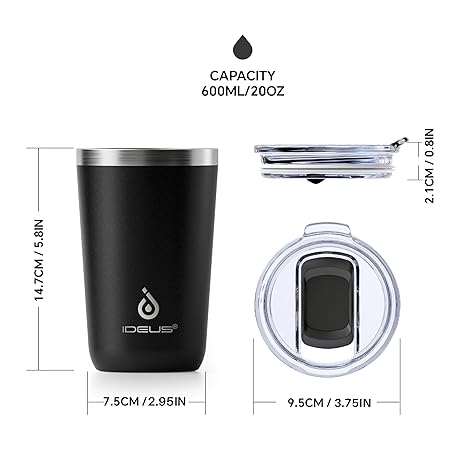 Thông tin sản phẩm Ideus 20 oz Tumbler, Travel Coffee Mug with Splash Proof Sliding Lid, Double Wall Stainless Steel Vacuum Insulated Coffee Mug for Home and Office, Keep Beverages Hot or Cold, Black