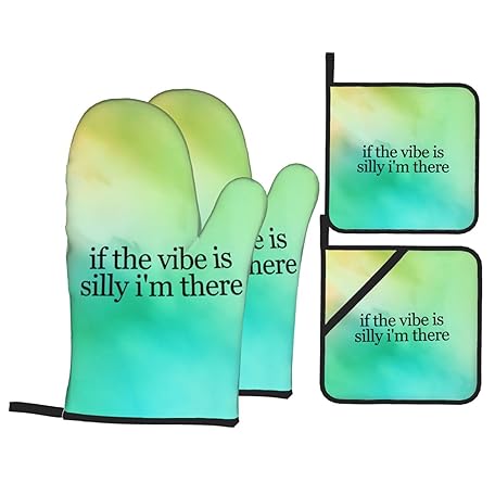 If The Vibe is Silly I'm There Oven Mitts and Pot Holders 4pcs Set, Kitchen Oven Glove High Heat Resistant Oven Mitts and Potholder for BBQ,Kitchen,Cooking,Baking