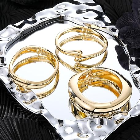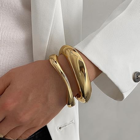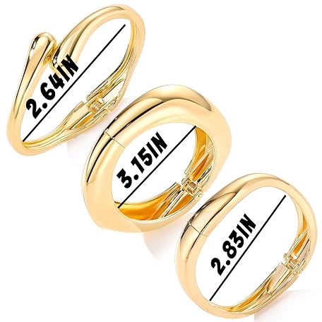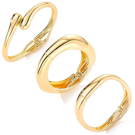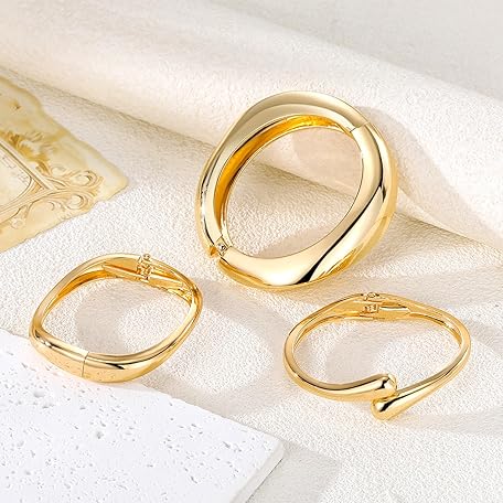 • IFKM 3pcs Chunky Gold Bangle Bracelet For Women 14k Gold Plated Trendy Wide Hinged Cuff Open Bracelet Dainty Minimalist Jewelry Gifts
