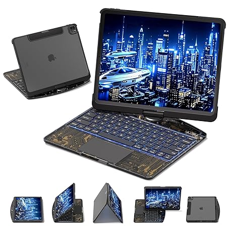 iGENJUN iPad Keyboard with Case for iPad Air 13 Inch(M3 2025 / M2 2024) and iPad Pro 12.9 Inch (6th, 5th, 4th, 3rd Gen), Wireless Keyboard, 7-Color Backlit, 360°Rotating, with trackpad