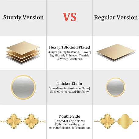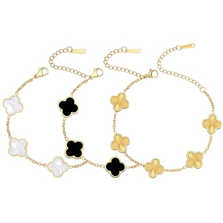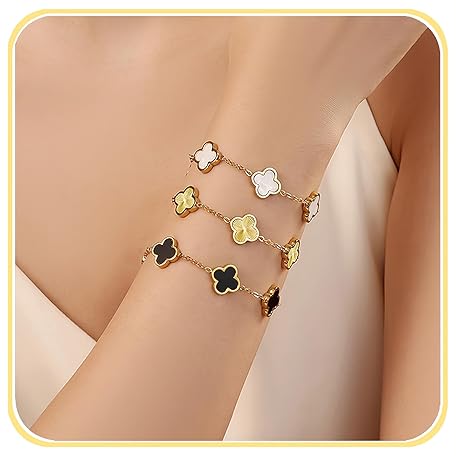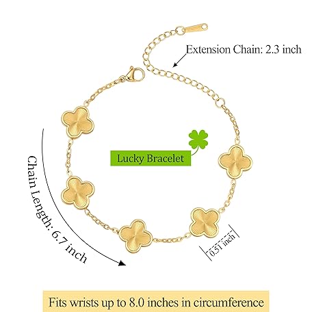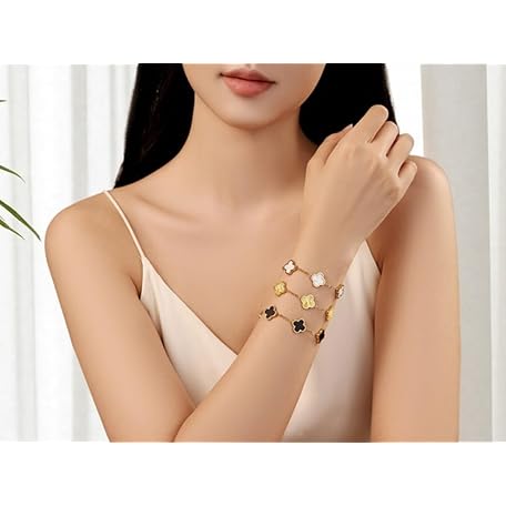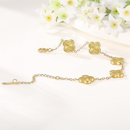 Thông tin sản phẩm iGenztech (Sturdy Version) 18K Gold Plated Bracelets for Women Men (Double Sided) Four Leaf Clover Cute Trendy Lucky Braclet (Adjustable) Fit Wrist Within 8 Inch, Gold White Black Green Blue Red Pink