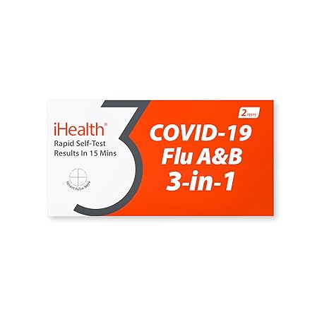 Thông tin sản phẩm iHealth COVID-19, Flu A&B 3-in-1 Antigen Rapid Test, Results in 15 Minutes, FDA Authorized OTC Flu & COVID Home Test, with Non-invasive Nasal Swab, Easy to Use & No Discomfort (1 Pack, 2 Tests Total)