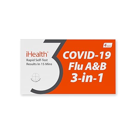 Thông tin sản phẩm iHealth COVID-19, Flu A&B 3-in-1 Antigen Rapid Test, Results in 15 Minutes, FDA Authorized OTC Flu & COVID Home Test, with Non-invasive Nasal Swab, Easy to Use & No Discomfort (1 Pack, 4 Tests Total)