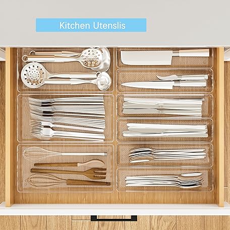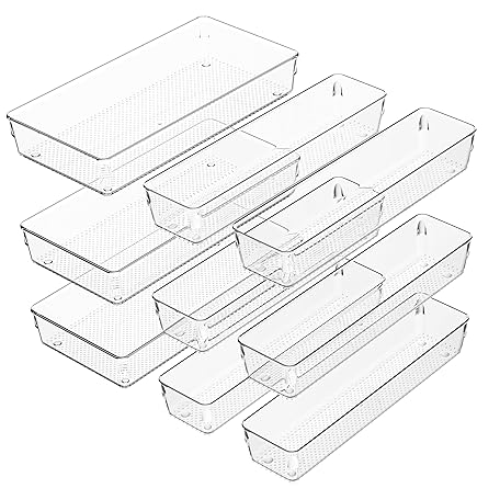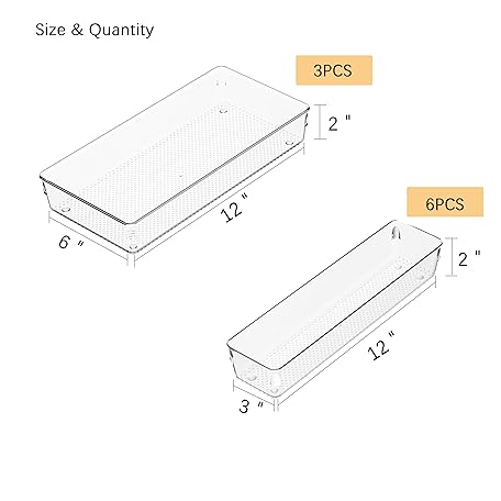 Sản phẩm ihomecooker 3 Pack Clear Plastic Drawer Organizer Tray Cutlery Utensil Makeups Drawer Silverware Organizers 12" X 6"&12"X3"(9Pack) đang được bán với giá ưu đãi là $29.4082 tại nước Mỹ.