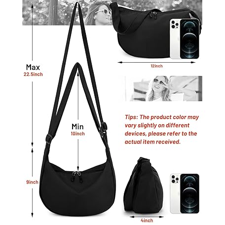 Thông tin sản phẩm Iioscre Crossbody Sling Bag for Women Men Trendy, Crescent Bag with Adjustable Strap, 2 Zippers Lightweight