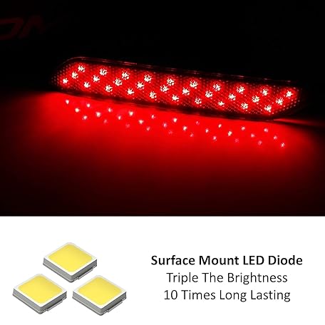 • iJDMTOY Smoked Lens 60-SMD LED Bumper Reflector Lights Compatible With 2013-2015 Honda Civic Sedan, Function as Tail, Brake & Rear Fog Lamps