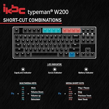 Thông tin sản phẩm ikbc W200 Wireless Mechanical Keyboard with Cherry MX Red Switch for Windows and Mac OS, Enables Media Key and LED Indicator (2.4G Dongle, USB 2.0, PBT Double Shot 87 Keycaps, Black Color, ANSI/US)