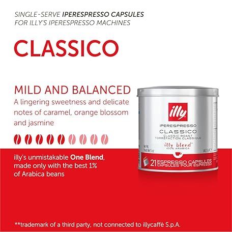 Thông tin sản phẩm illy Coffee iperEspresso Capsules - Single-Serve Coffee Capsules & Pods - Single Origin Coffee Pods – Classico Lungo Roast with Notes of Caramel - For iperEspresso Capsule Machines – 21 Count, 6 Pack