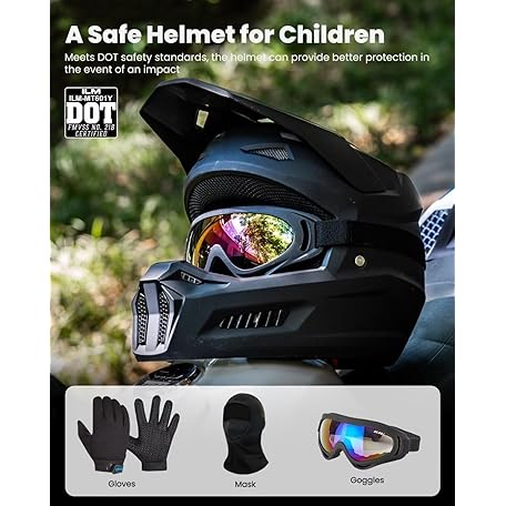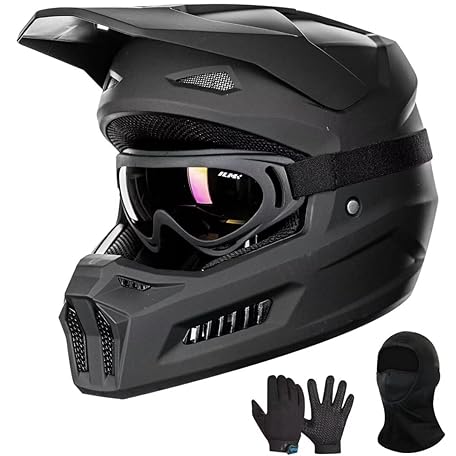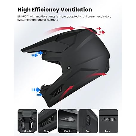 • ILM Youth Dirt Bike Helmets Kids ATV Helmet Motorcross BMX Off Road Motorbike with Goggles Gloves Mask DOT Model MT601Y (Matte Black, Youth-XLarge)