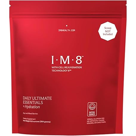 IM8 Daily Ultimate Essentials All-in-1 Multivitamin Supplement, 92 Nutrient Rich Ingredients CoQ10, Probiotics, Vitamins, Greens, GF, Acai Mixed Berry (30 Servings, Refill Pouch)