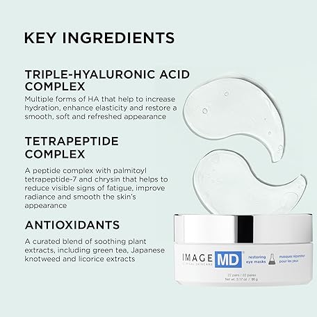 Thông tin sản phẩm IMAGE Skincare, IMAGE MD Restoring Eye Masks, Hydrating Hydro-Gel Under Eye Masks, 3x Hyaluronic Acid Visibly Firms and Hydrates