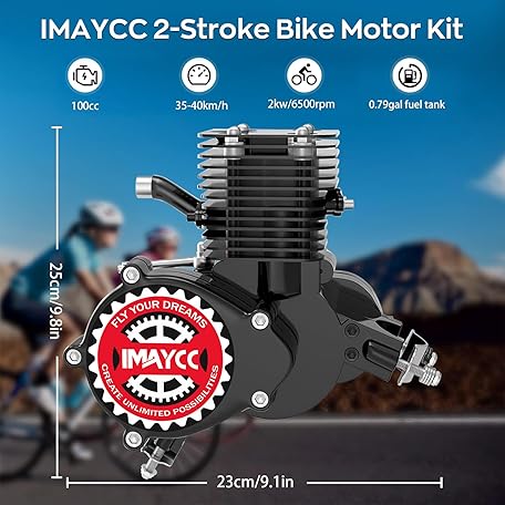 • IMAYCC 100cc Bicycle Engine Kit 2 Stroke Motorized Bike Motor Conversion Kit Fit for 26-28" Bikes(100CC Black)