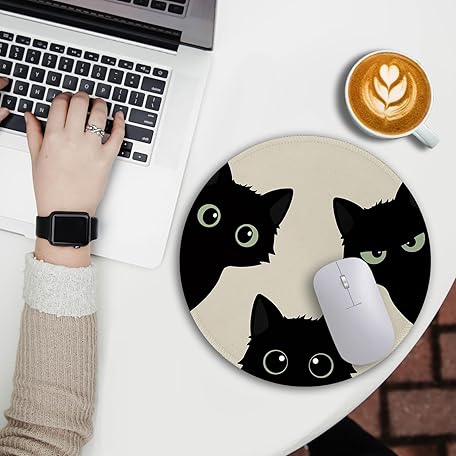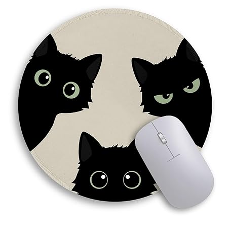 Immaturus Black Cat Mouse Pad, Cute Small Mouse Pads for Desk, Round Travel Mousepad for Wireless Mouse Gaming Work Laptop, Mini Computer Mouse Mat, Home Decor Office Desk Accessories Supplies