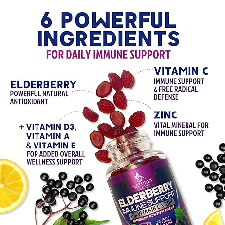 Thông tin sản phẩm Immune Support Gummies - Sambucus Elderberry Gummy with Elder Berry Extract, Zinc & Vitamin C, Natural Vegan Immune Support Supplement for Adults & Children, Gummy Elderberry Vitamins - 120 Gummies