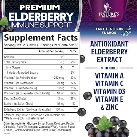 Thương hiệu Nature's Nutrition là cái tên nổi tiếng được rất nhiều khách hàng trên thế giới chọn lựa. Với kiểu dáng đẹp mắt, sang trọng, sản phẩm Immune Support Gummies - Sambucus Elderberry Gummy with Elder Berry Extract, Zinc & Vitamin C, Natural Vegan Immune Support Supplement for Adults & Children, Gummy Elderberry Vitamins - 120 Gummies là sự lựa chọn hoàn hảo nếu bạn đang tìm mua một món cho riêng mình.