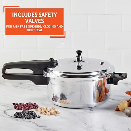 Sản phẩm Imusa 4.2 Quart Stovetop Aluminum Presure Cooker with safety valves for risk-free opening đang được bán với giá ưu đãi là $54.4891 tại nước Mỹ.