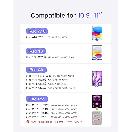 Inateck for iPad 11th/10th Generation Case with Keyboard,for iPad 10th(10.9")/11th Gen(2025 A16),Air 11" M3/M2,Air 6/5/4th,Pro 11 4/3/2/1,Ultralight Detachable Keyboard with Touchpad, AceTouch Purple