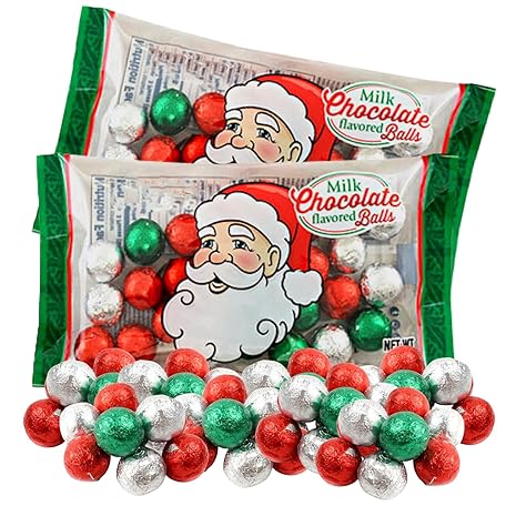 Individually Wrapped Santa & Santa's Helpers Holiday Chocolates, Bite Sized Christmas Treats, Party Favor, Stocking Stuffer, and More, 4.5 Ounces, 2 Pack (Chocolate Balls)