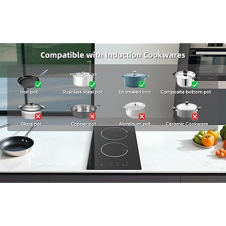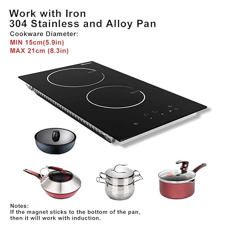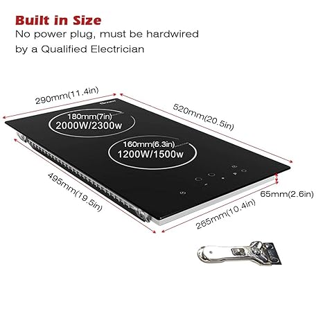 Thông tin sản phẩm Induction Cooktop 12 Inch, 220V~240V, 2 Burners Electric Cooktop,3500W, 12'' Built-in Double Electric Stove Top Countertop Cooker with Hard Wire,No Plug