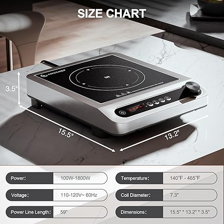 Thông tin sản phẩm Induction Cooktop, 1800W Commercial Induction Burner, 7.3” Heating Coil Professional Countertop Stove Burner, Hot Plate 3 Hours Timer, 18 Levels Temperature & Power