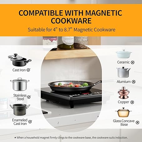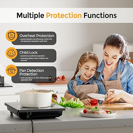 Thông tin sản phẩm Induction Cooktop 1800W Portable Electric Stove Countertop, 8 Preset Functions & Temp Settings, 2 Cooking Modes, Timer, Child Lock for Tiny Kitchen, Apartment, Camping, RV Countertop Burner