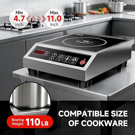 Thông tin sản phẩm Induction Cooktop Commercial 1800W, Portable Countertop Burner with 8" Fast Heating Coil, 11 Temp/Power Levels, 24H Timer Stainless Steel Electric Stove for for RV Home Kitchen