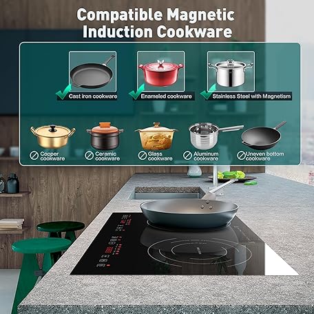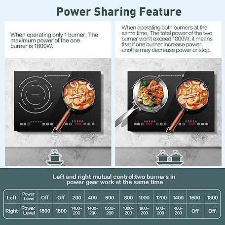 Thông tin sản phẩm Induction Cooktop with 2 Burners, Horizontal Electric Stove, Built-In Induction Cooker, 1800W Sensor Touch Electric Cooktop, 18 Power Levels, Timer, Safety Lock, 120V, 20 Inch