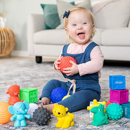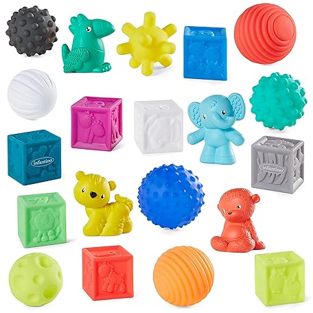 Thông tin sản phẩm Infantino Sensory Balls, Blocks & Buddies - Textured, Soft & Colorful Toys Includes 8 Balls, 8 Numbered Blocks, 4 Animal Buddies, Ages 0 Months +, 20-Piece Set