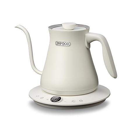 INFOOD 0.8L Gooseneck Electric Kettle, Precise Temperature Control for Pour Over Coffee & Tea, 1200W Fast Boiling Water, Auto Shut Off, Scheduling, Stainless Steel, White