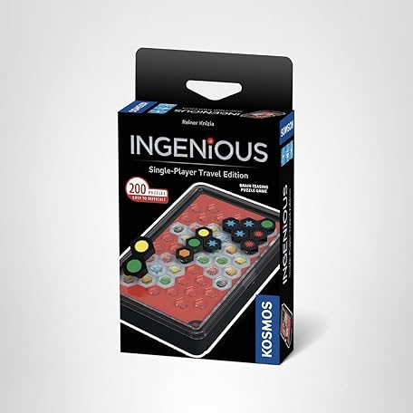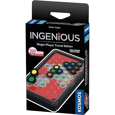 Ingenious: Single-Player Travel Edition, Kosmos, Fast-Paced, Addictive, and Easy-to-Learn, Convenient Self Contained Carrying Case, Solo Geometric Puzzle Game, for Ages 8 and Up