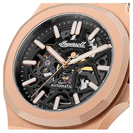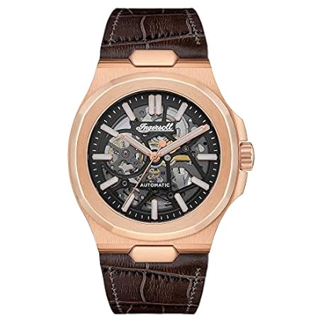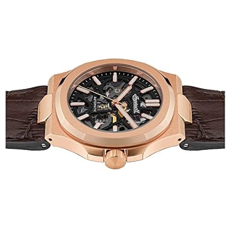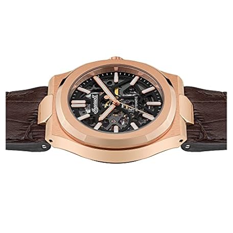 Ingersoll 1892 The Catalina Mens 42mm Automatic Watch with Skeleton Dial and Leather Strap, Rose Gold, Bracelet