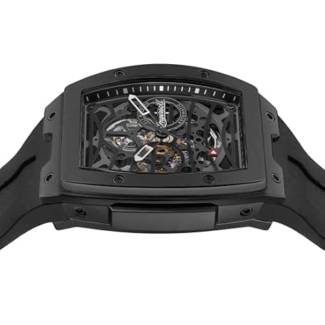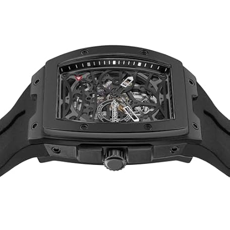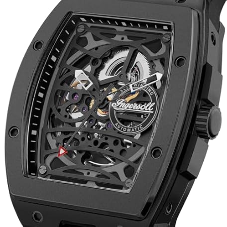 • Ingersoll The Rim Men's 42mm Automatic Watch with Black Skeleton Dial and Black PU Strap I16201