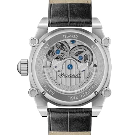 Ingersoll The Varsity Mens 47mm Automatic Watch with Grey Skeleton Dial and Black Leather Strap I15402