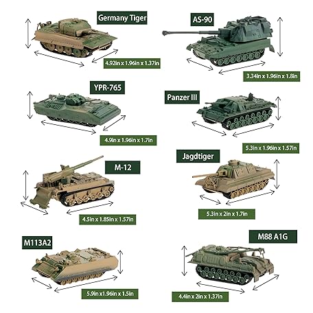 Thông tin sản phẩm INGWETECH 1:72 Assembly Tank Model Set 8 Pcs Incl. Panzer III, Jagdtiger, AS-90, M12, M113A2, YPR-765, Tiger, M88A1G
