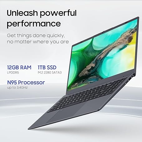 Thông tin sản phẩm INHONLAP Laptop Computer, 1TB SSD, 12GB RAM Laptops, Quad Core N95 Processor, 15.6" FHD IPS Display, Laptop Support Fingerprint, WiFi 5, BT 5.0, USB-C, HDMI, Black