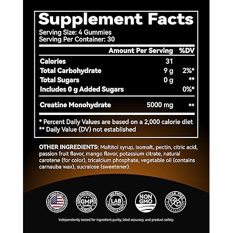 Thông tin sản phẩm Inner Brightness Creatine Monohydrate Gummies for Men 5000 mg, 3rd Party Tested, Creatine Gummies for Muscle Growth, Strength & Energy Support, Sugar Free, Vegan, 120 Count, Mango Passionfruit Flavor