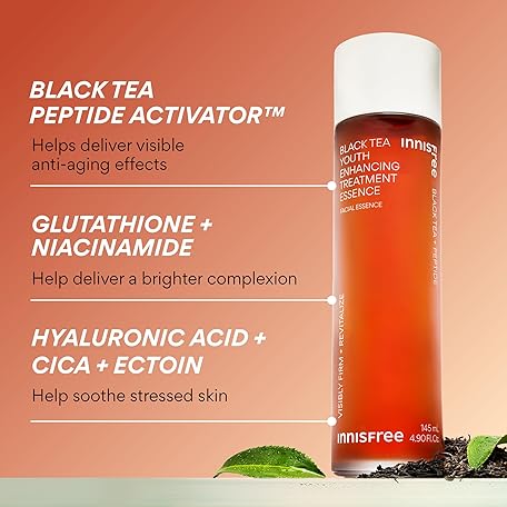 innisfree Black Tea Youth Essence, Korean Anti-Aging Treatment with Niacinamide for Radiance, Firm Skin, Hydration, and Barrier Support