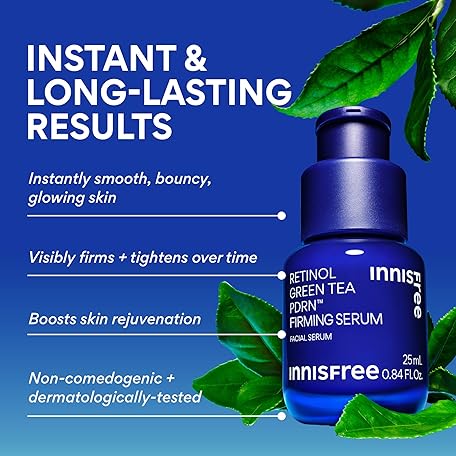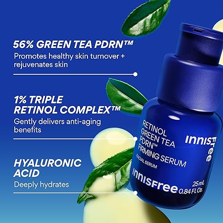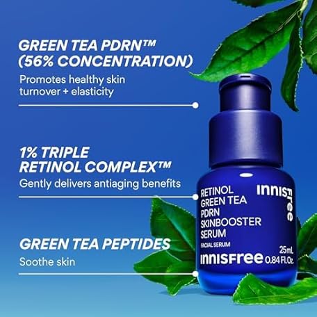 • innisfree Green Tea Retinol PDRN Firming Serum, Vegan Korean Skincare for Fine Lines and Skin Texture