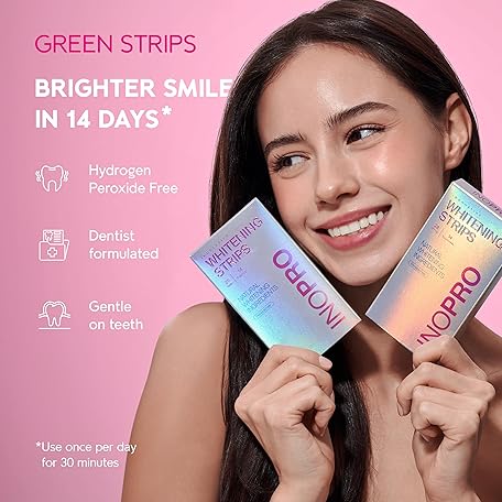 Thông tin sản phẩm InoPro Teeth Whitening Strips Treatments Kit - Enamel Safe Teeth Whitener, Peroxide-Free, Green White Strips for Teeth Whitening with Arbutin, Coconut Oil, Deep Stains Removal (28 Strips)