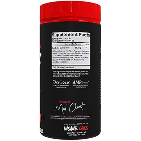Thương hiệu Insane Labz là cái tên nổi tiếng được rất nhiều khách hàng trên thế giới chọn lựa. Với kiểu dáng đẹp mắt, sang trọng, sản phẩm Insane Labz Psychotic Diablo Thermogenic Fat Burner for Men and Women with Grains of Paradise Theobromine Dandelion Root Extract Fueled by AMPiberry, Appetite Suppressant - 60 Servings là sự lựa chọn hoàn hảo nếu bạn đang tìm mua một món cho riêng mình.