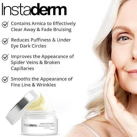 Thông tin sản phẩm Instaderm Vitamin K Cream- Bruise Healing Formula with Arnica. Dark Spot Moisturizer for Bruising, Spider Veins & Broken Capillaries. Repair Under Eye Dark Circles, & Puffiness.