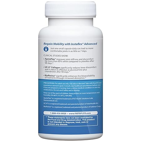 Thông tin sản phẩm Instaflex Advanced Joint Support Nutritional Supplement Capsule with Doctor Formulated Joint Relief Supplement, Featuring UC-II Collagen & 5 Other Joint Discomfort Fighting Ingredients, 60 Ct