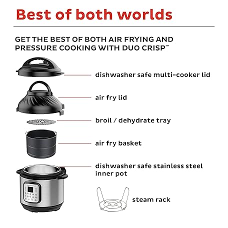Thông tin sản phẩm Instant Pot Duo Crisp 11-in-1 Air Fryer and Electric Pressure Cooker Combo with Multicooker Lids that Air Fries, Steams, Slow Cooks, Sautés, Dehydrates, & More, Free App With Over 800 Recipes, 6 Quart