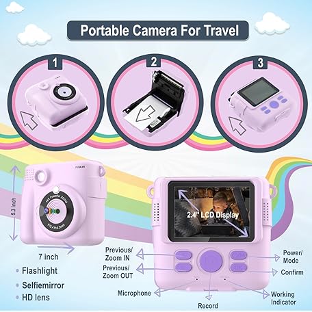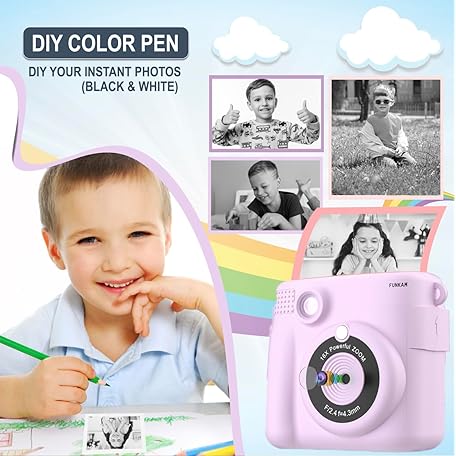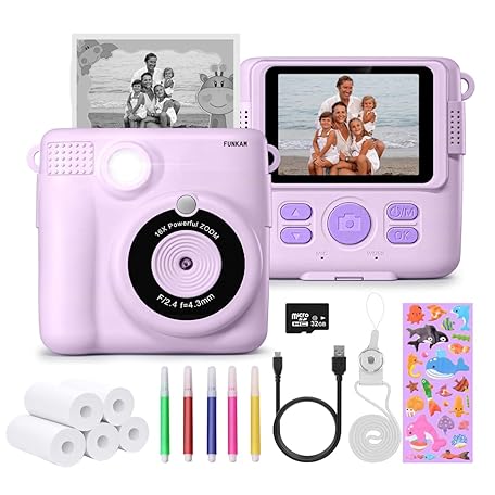 Thông tin sản phẩm Instant Print Camera for Kids - 2.4" HD 1080P - with 32GB SD Card, 5 Markers, Stickers, 5 Paper Rolls, Lanyard. Camera Boys and Girls from 3 to 14 Years Old. (Purple)