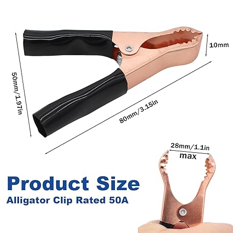 Sản phẩm Insulated Alligator Clips Durable Heavy Duty Black & Red Boot Metal Spring Loaded Truck Car Battery Electric Test Clips Lead Probe Alligator Clamps (50A 10-PACK) đang được bán với giá ưu đãi là $6.976 tại nước Mỹ.