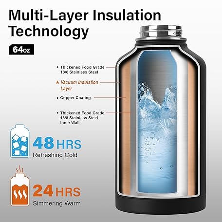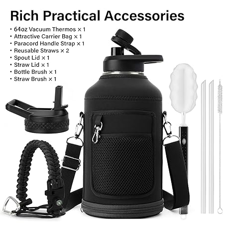 Sản phẩm Insulated Water Bottle | Thickened Stainless Steel Vacuum Metal | Portable Sports Half Gallon Large Water Jug for Gym and Hiking with Straw, Carrier Bag, Handle Strap | BPA-Free 64 oz đang được bán với giá ưu đãi là $23.9691 tại nước Mỹ.