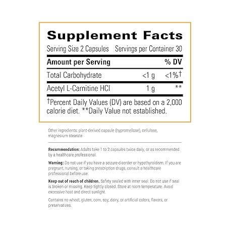 Thông tin sản phẩm Integrative Therapeutics Acetyl L-Carnitine - Supports Healthy Cellular Energy Production* - Supports Nerve Cell Function* - Vegan, Gluten-Free & Dairy-Free - 60 Capsules (30 Servings)