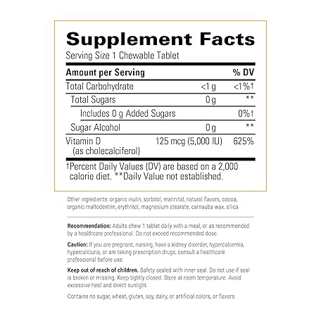 Thông tin sản phẩm Integrative Therapeutics Vitamin D3 125 mcg - Vitamin D Supplement for Bone Health & Immune Support* - Gluten-Free & Dairy-Free - Chocolate Flavored, 90 Chewable Tablets (90 Servings)