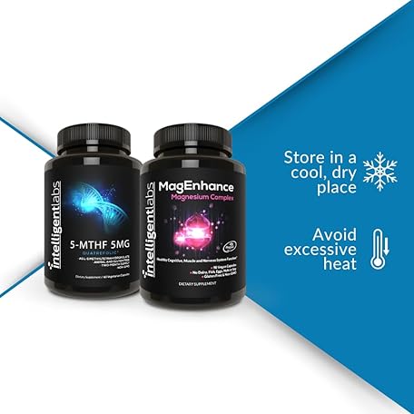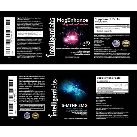 Thông tin sản phẩm Intelligent Labs 2-in-1 Bundle of MagEnhance Supplement (with Magnesium L-Threonate, Glycinate & Taurate) and 5MG 5-MTHF Methylfolate as Quatrefolic Acid® (MTHFR Supplement for Methylation Support)